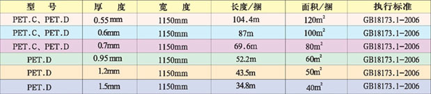 1.產(chǎn)品構(gòu)成 SY-PET聚脂高強(qiáng)復(fù)合防水卷材,選用聚乙烯含有PET材質(zhì)做防水芯層,兩表面用熱軋非織造布稱為PET.C防水卷材,兩表面用短纖針刺非織造布做增強(qiáng)層稱為PET.D防水卷材(兩種卷材以下簡稱PET防水卷材) 2.產(chǎn)品特點(diǎn) a. PET防水卷材最大的特點(diǎn)就是PET材質(zhì)夾在中間,大大提高了產(chǎn)品的機(jī)械強(qiáng)度,而且質(zhì)地柔軟并附有彈性,隨服性好,易施工。 b. PET防水卷材上下非織造布纖維呈無規(guī)則立體交叉結(jié)構(gòu),形成多孔狀表面,可用多種膠粘劑粘接,均可收到良好的粘接效果。 c. PET防水卷材與本公司生產(chǎn)的SY-JF-1高效膠粉或SY-JZJ-1膠粘劑、SY -JF-2接縫密封膠粉配套施工,粘接剝離強(qiáng)度可達(dá)到規(guī)范要求的15N/cm. d. PET防水卷材用水泥膠粘劑粘結(jié)時(shí),水泥膠粘劑進(jìn)入卷材的表面隙中,隨水泥固化為一體,故粘接永久牢固。 e. 施工后的PET防水卷材表面可直接進(jìn)行裝飾、裝修(如貼瓷磚,鑲地板磚等) f. 對粘貼PET防水卷材的水泥基面含水率沒有特殊要求,只要沒有明水即可施工,且保證工程質(zhì)量。 g. 該產(chǎn)品無害、無毒、無污染,屬綠色環(huán)保型產(chǎn)品。 3.使用范圍 該產(chǎn)品適用于建筑、水利、環(huán)保和交通等領(lǐng)域的防水、防滲、防潮、隔汽和防污染工程。如建筑工程:屋面、地下、廁浴間等;水利工程:水庫、堤壩、圍堰、渠道等;環(huán)保工程:垃圾填埋場、污水處理廠、冶金化工污染物堆放場等;交通工程:橋梁、地鐵、公路、鐵路、洞體、渠道等;園林工程:屋頂花園、種植屋面、園林小品等。 4.產(chǎn)品規(guī)格(依據(jù)工程需要和國家有關(guān)規(guī)定在下列規(guī)格中選擇,如有特殊要求另與我公司商定)